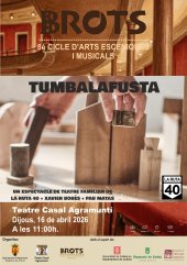 Tumbalafusta és un espectacle per a públic familiar que combina el teatre de text, el teatre d’objectes i la música. I que gira al voltant de temes fonamentals com l’amistat, la imaginació, la infància, el joc i el pas del temps. La fusta és l’element principal d’aquesta proposta on dos parells de mans mouen peces per l’espai i fan aparèixer paisatges, històries, jocs, imatges, paraules… en un imaginatiu viatge on intèrprets i espectadors compartiran preguntes sobre com funciona el món que els envolta, acompanyant el constant procés de descoberta que és fer-nos grans.